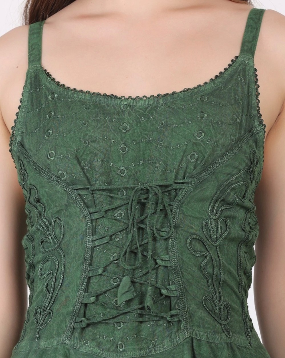 -Style : Bohemian, Gypsy, Peasant, Gothic, Sleeveless, Fit & Flare, Spaghetti Strap, Lace-up Bodice