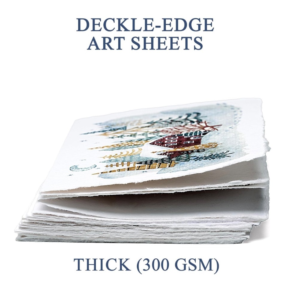 deckled edge cotton rag paper is more than just a medium; it's a canvas for creativity and a keeper of memories. Your creations will endure, retaining their original vibrancy and value over time. Whether showcased on your mantel, the refrigerator, your home studio, or as bespoke stationery, let your art continue to shine beautifully on this natural, artisanal paper.