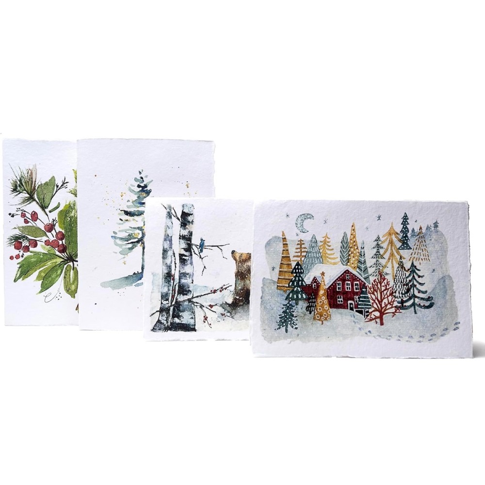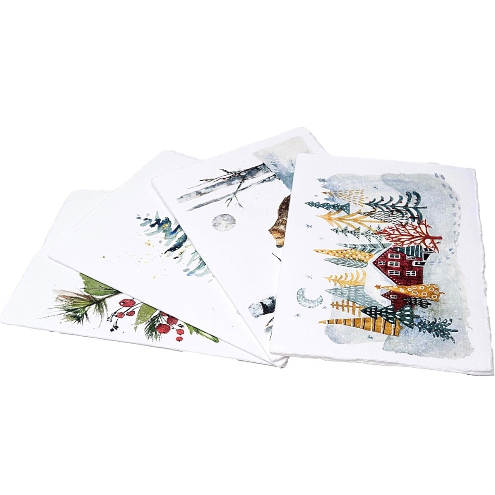 • Artisan Crafted Variety Pack: Discover the beauty of tradition with these 4-packs of super thick 300 gsm cotton deckled edge paper greeting cards and 150 gsm envelopes, each printed with a winter art cover and folded to 5"x7" / 13x18 cm.