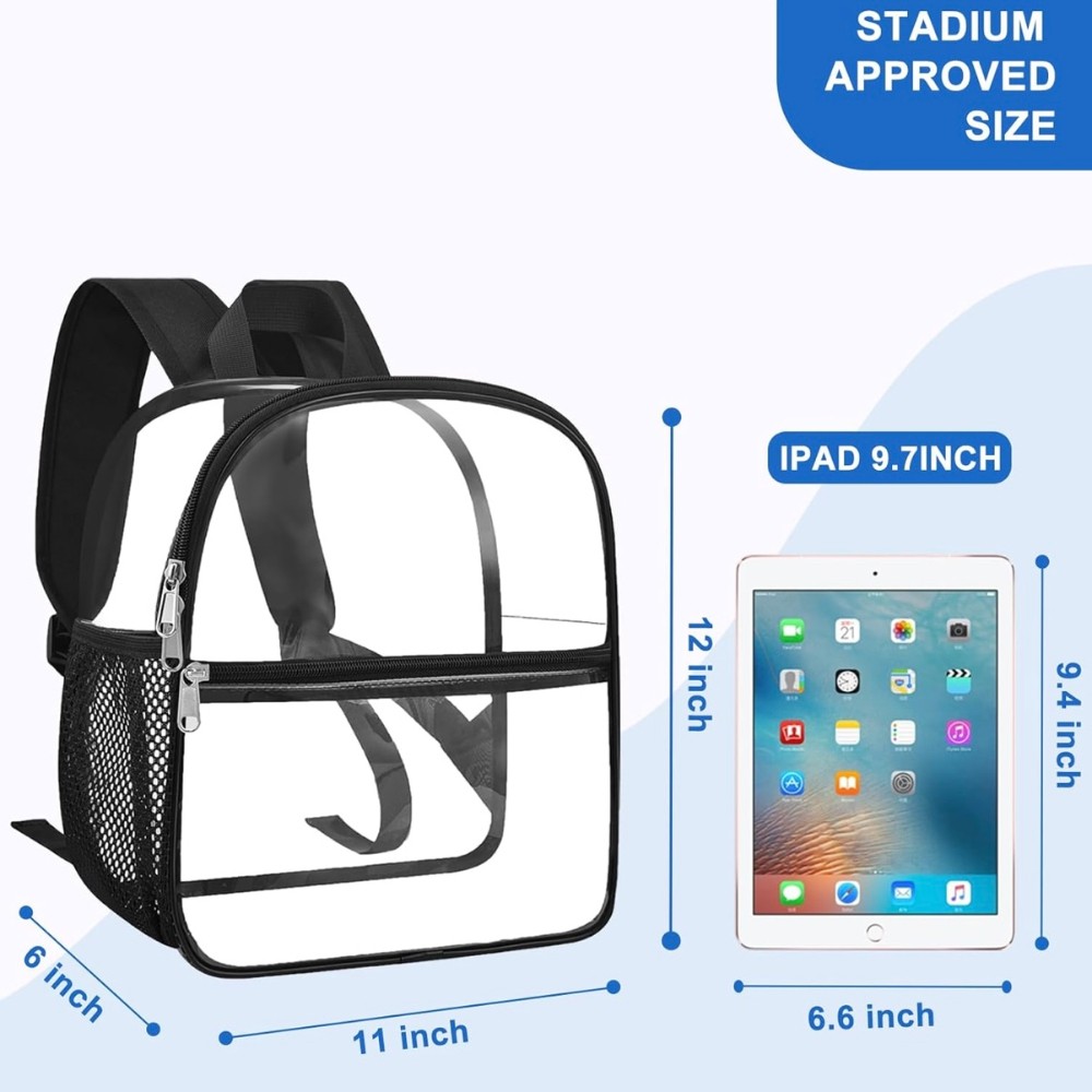 • Clear Bag for Stadium Events- Small clear backpack for stadium events measures 12x6x11 inches, effortlessly comply with clear bag policies of no larger than 12*6*12 inches.