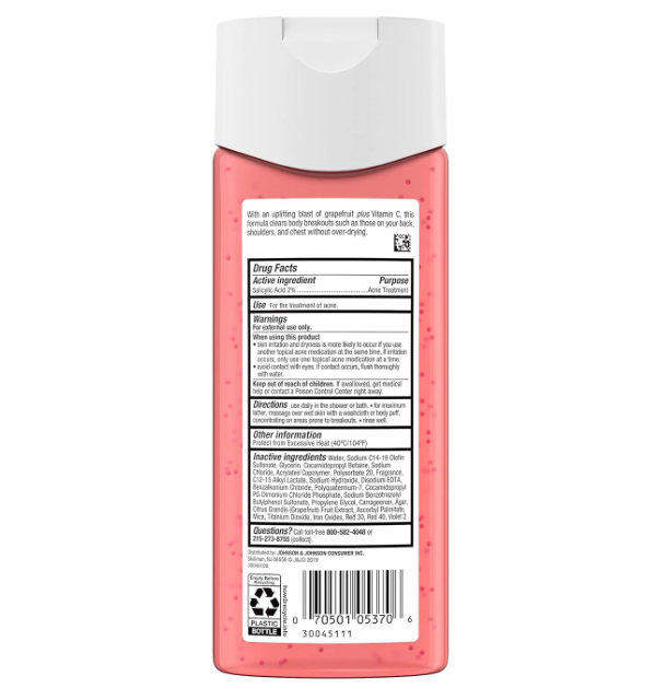 - One 8.5-fluid ounce bottle of Neutrogena Body Clear Pink Grapefruit Acne Body Wash with salicylic acid acne medication specially designed for acne-prone skin to help treat and prevent acne breakouts
