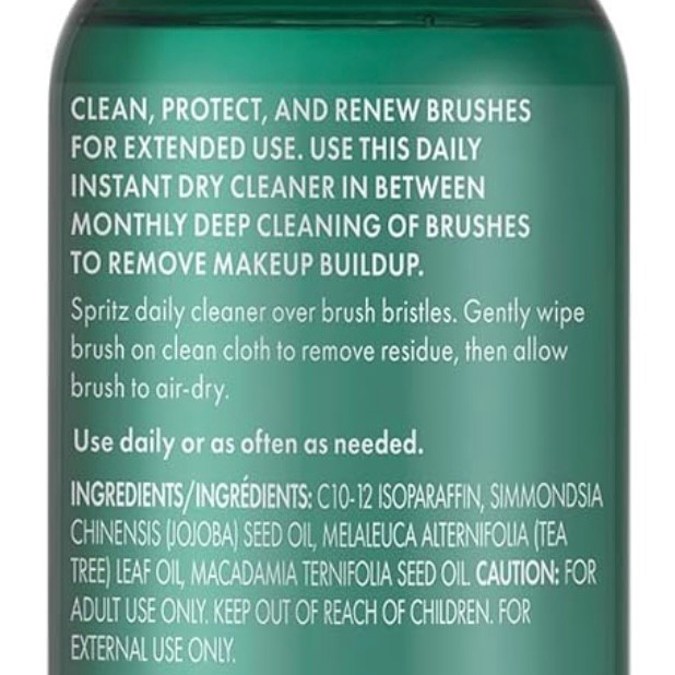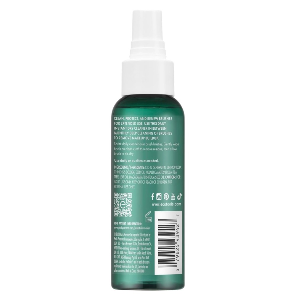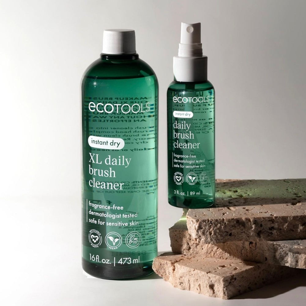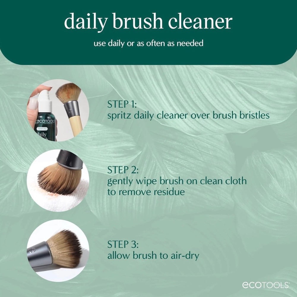 The EcoTools Daily Brush Cleaner helps you clean, protect, and renew makeup brushes for extended use in between monthly deep cleanings. This daily makeup brush cleaner is quick drying making it convenient for daily usage. Just spray onto brush bristles, wipe away any residue, and allow the brush to airdry. It's also TSA Approved and works great for keeping brushes clean while traveling. No need to worry about any harsh chemicals. Our instant dry brush spray is fragrance-free, dermatologist tested, and safe for sensitive skin.