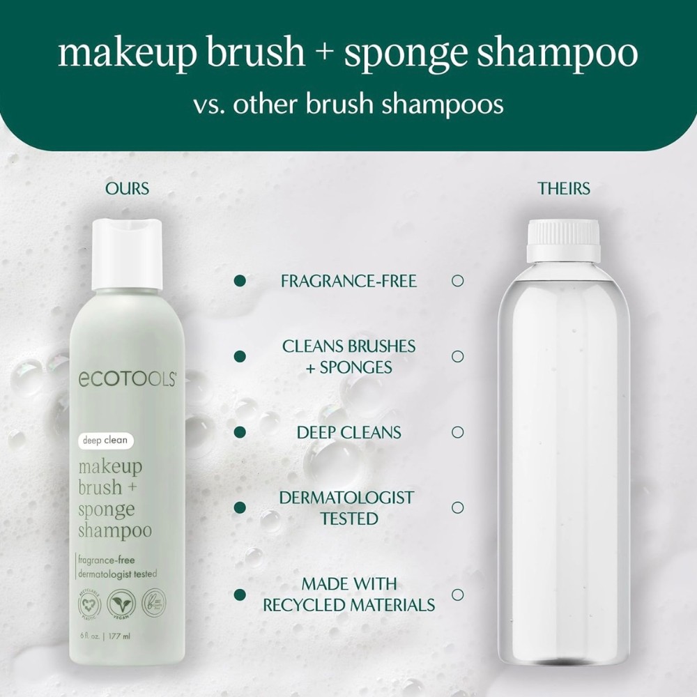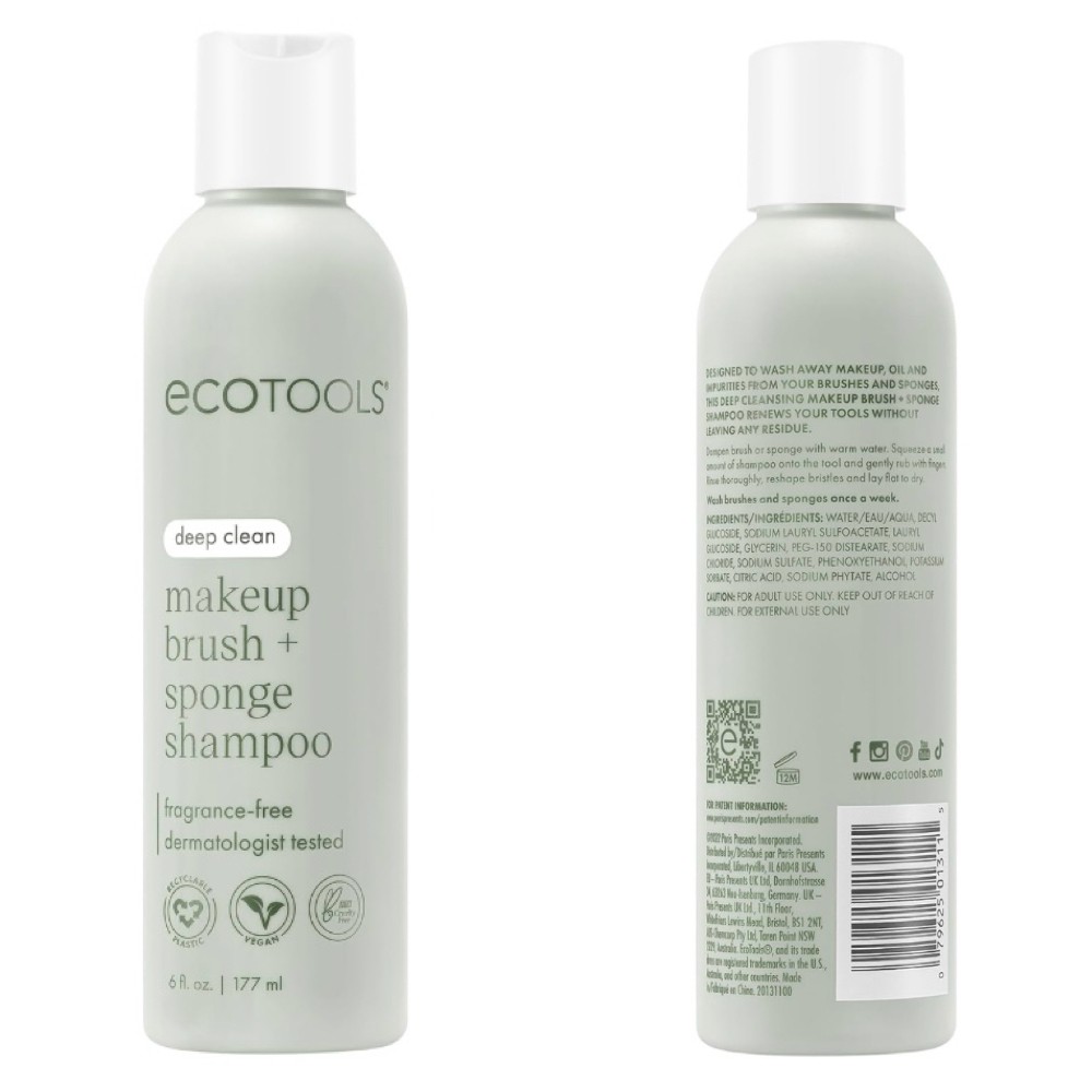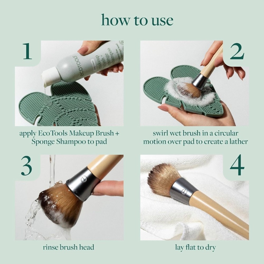 The EcoTools Makeup Brush Cleansing Pad + Deep Clean Shampoo Bundle is your perfect cleansing duo for deep cleaning your makeup brushes. The makeup brush cleaner bundle includes our brush cleaner mat and makeup brush cleanser. The brush cleaning pad is designed with a suction cup for mess-free usage, and the textured pad helps to scrub all the makeup, oil, and other impurities from your favorite makeup brushes. The Eco Tools Brush Shampoo is made with gentle, plant-based ingredients that cleanse makeup tools properly without all the harsh chemicals. It's dermatologist tested, hypoallergenic, and fragrance-free. This makeup brush cleaner is also free of parabens, phthalates, and petroleum-based ingredients but still manages to leave brushes clean, soft, and durable. The EcoTools makeup brush cleaner mat is made from silicone, making it reusable.