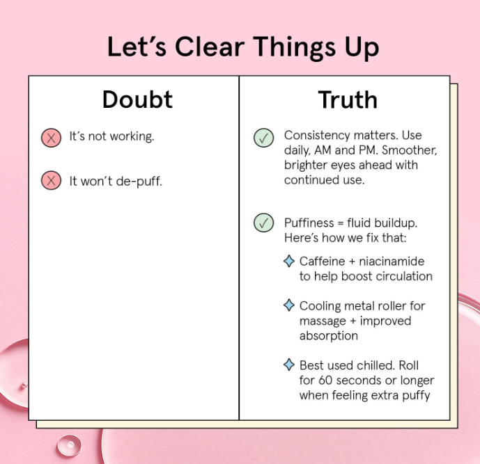 - Award Winning Eye Serum Roller: Puffy in the morning? Our eye roller for puffy eyes has soothing ingredients & a cooling rollerball to soothe & cool tired-looking eyes. Pop it in the fridge for extra depuffing power.