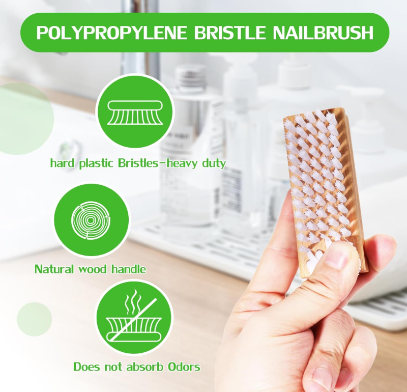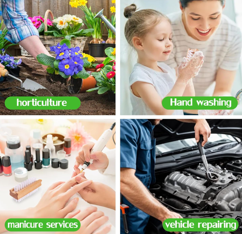 High Durability, Ideal for Heavy-Duty Cleaning:The nail brush is made from natural lotus wood and features stiff white plactic bristles, designed specifically for deep cleaning. Whether you're gardening, repairing a car, or maintaining a motorcycle, you can easily clean dirt, oil stains, and debris from under your nails. It is sturdy and durable, perfect for daily high-intensity use, making it the ideal tool for cleaning your nails.