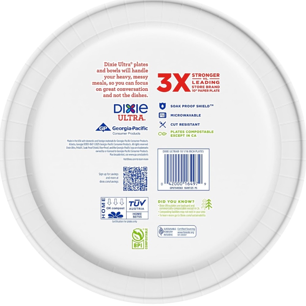 • RESPONSIBLY MADE- Dixie Ultra large paper plates (10 1/16") deliver the same strength and performance, but with the added benefit of being compostable except in California