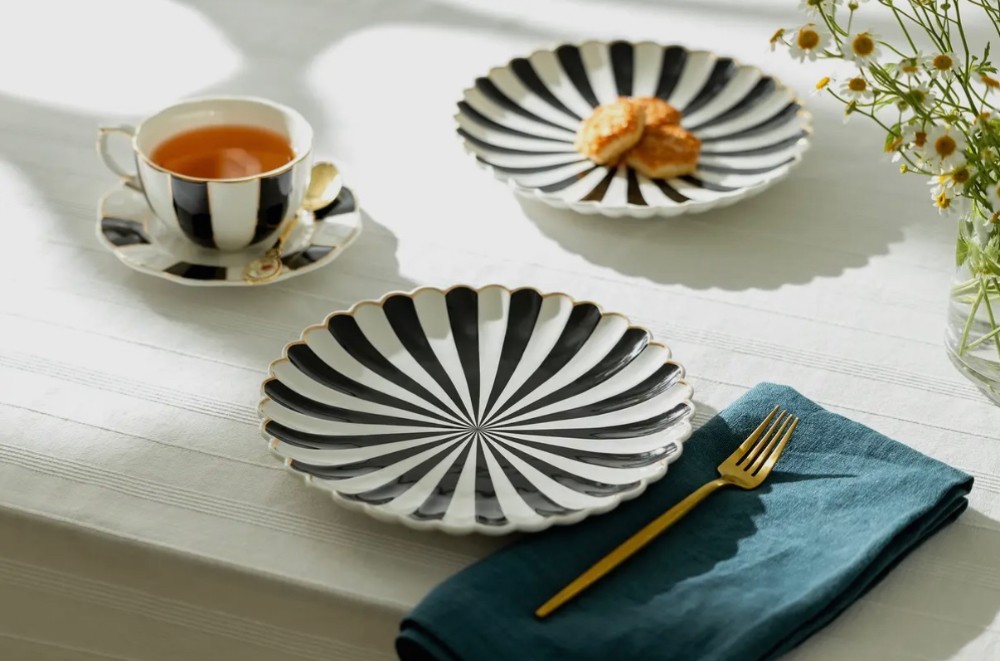 Grace Teaware Black & White 8.5" Scallop Fine Porcelain Dessert Plate Details: