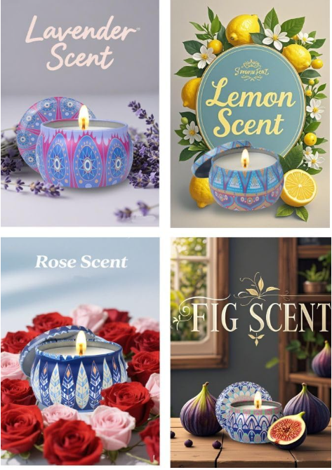 Mediterranean Fig, Lavender, Spring Rose, and Lemon. Perfect for relaxation, stress relief, or simply enhancing your home’s ambiance with a natural, long-lasting fragrance. *Please Check In-Store For Current Colors/Styles/Patterns & Scent Options Available*