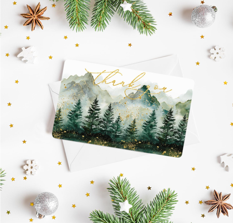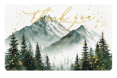 *Choose from 2 Styles of these Beautiful Mountain-Themed "Thank You" Gift Cards, Blank Inside, with Matching Envelope. (Check In-Store for current style availability)