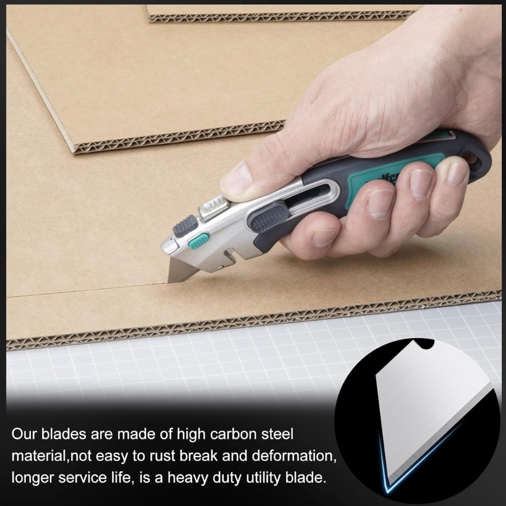 These come in sets of 10 Blades packed in a convenient protective storage box. Plus they fit perfectly in everyday manual and retractable box cutters, and are compatible with most utility knives, so they are great refill blades to keep handy in your toolbox.