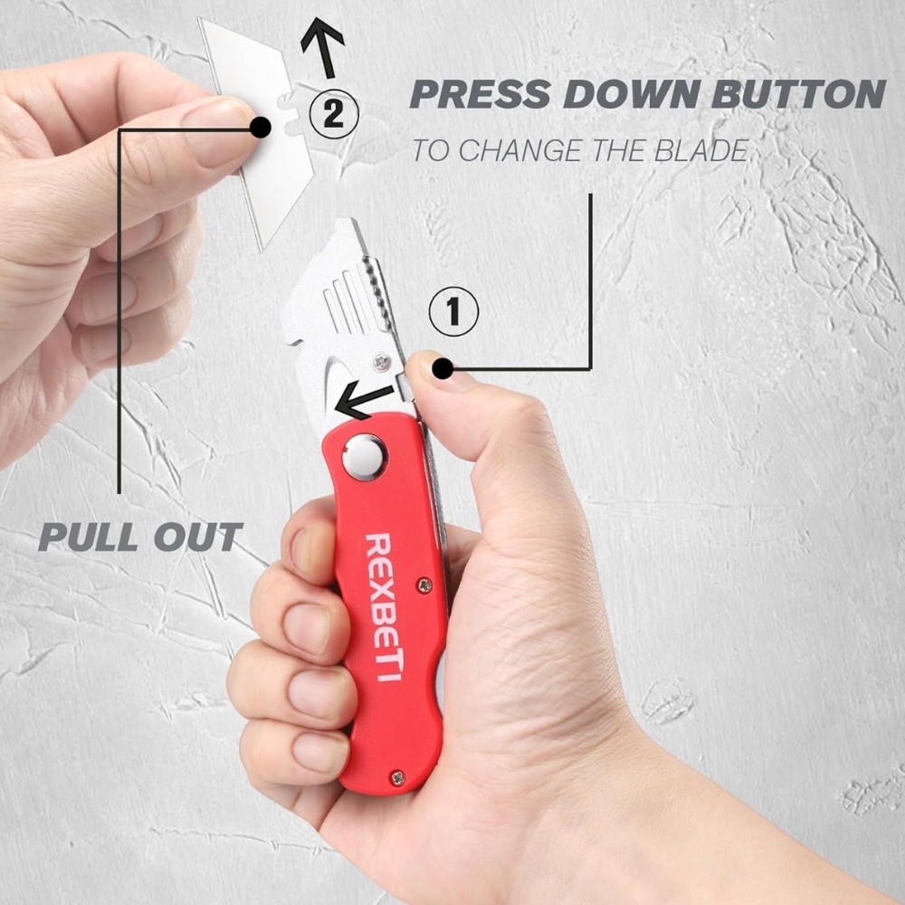 REXBETI Utility Knives can be the integral tool in your desk, home, office, or on-the-go - due to their versatile, compact & lightweight design. This utility knife is an essential tool that everyone should have on-hand at all times. Thanks to the ergonomical design, the strong grip will give you more confidence when doing cutting tasks. It Also comes with one high-hardness blade that is ready for immediate heavy duty use like home, art crafts, cutting boxes, cartons, DIY projects and even the most particular cutting tasks.
