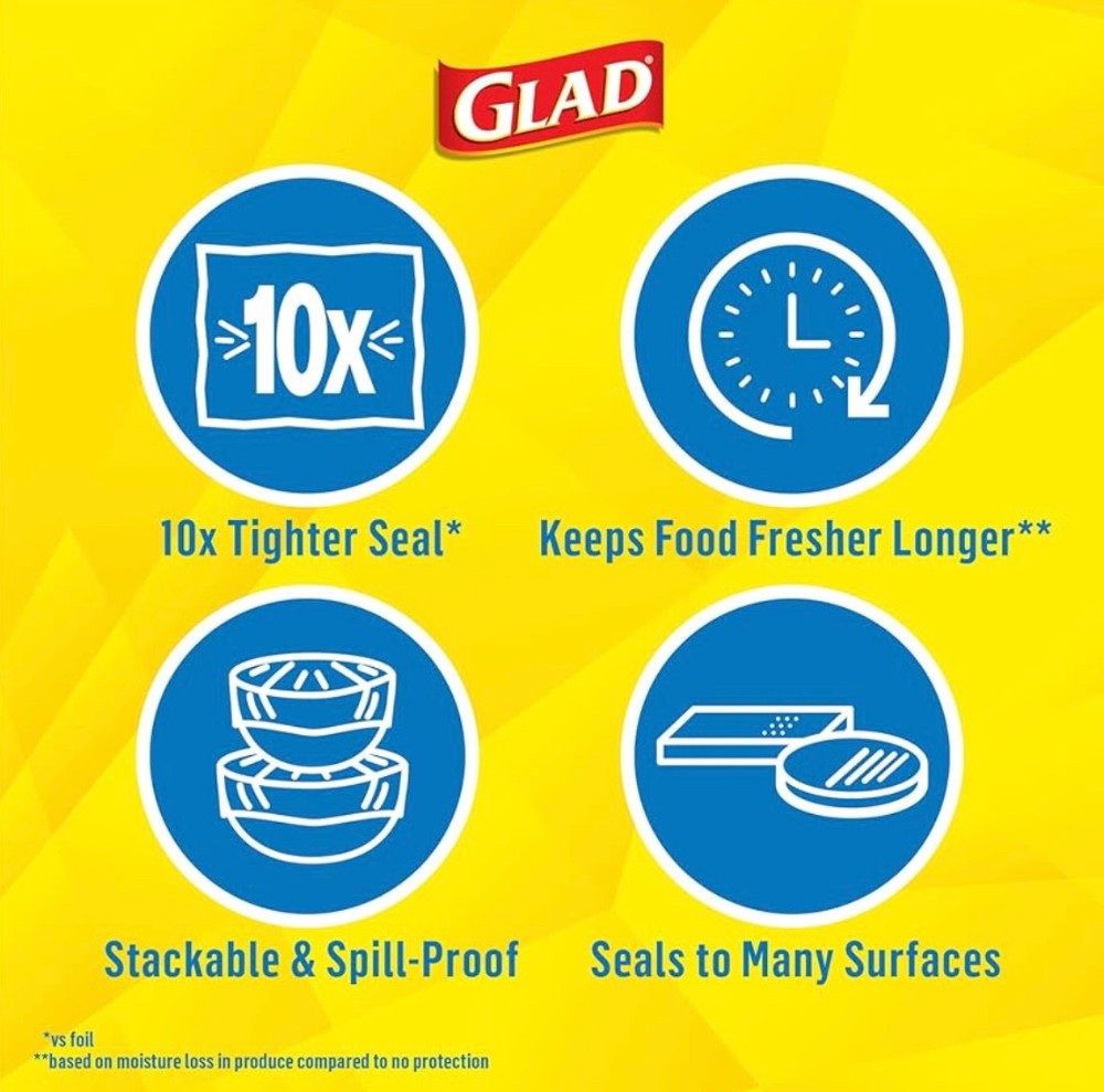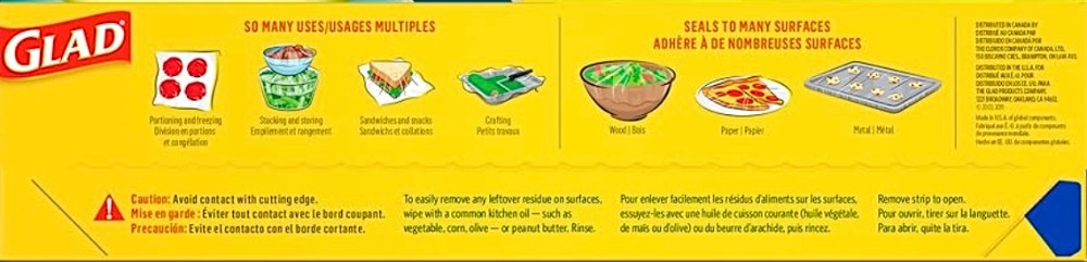 Glad Press ‘N Seal uses Griptex technology to protect food with a leak proof and airtight seal. Great for storing and protecting leftovers, this multipurpose wrap seals tightly onto a variety of surfaces, such as paper, plastic, metal, wood or other dry surfaces. The Griptex technology activates when pressure is applied and seals to itself, allowing you to create custom shaped food storage bags to freeze food or to make individual portions. It also works well around the house or at work to keep things clean and protected. Press ‘N Seal wrap is simple to use and easy to handle. The wrap is BPA free and microwave safe. Glad protects and seals with ease.