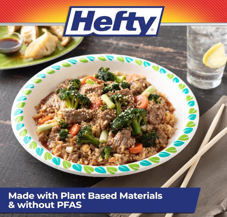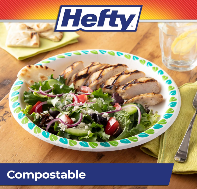 Cleanup just got even easier with Hefty Compostable Printed Paper Plates. These paper plates are commercially compostable only (facilities may not exist in your area) and are not suitable for home composting. Plus, with the green leaf printed rim, they’re the perfect blend of style and sustainability and will fit right in at your dinner table or family gathering. You can trust that these compostable paper plates are made Hefty strong, so they’ll stand up to your heartiest portions of chicken and potatoes, pasta, and more. And they’re 100% microwave safe and soak resistant, so you can enjoy your leftovers that much more! Because they’re made of plant based materials and are made without PFAS, they’re compostable. With Hefty Compostable Printed Paper Plates, you don’t have to choose between easy cleanup, sustainability, and ultra strong durability. Don’t forget: all Hefty products are backed by a 100% satisfaction guarantee.