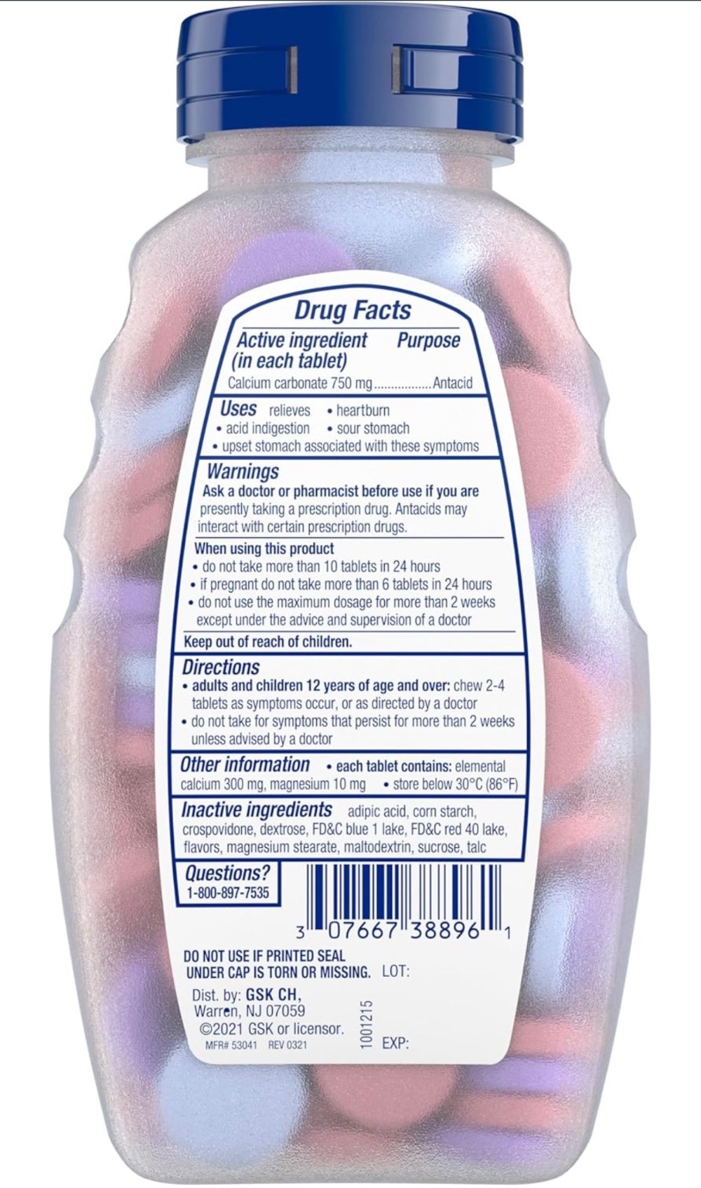 - Active Ingredients: (per tablet) Calcium Carbonate USP 750mg Antacid