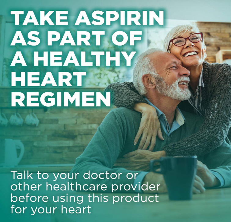 - ASPIRIN: Adult Aspirin Regimen; talk to your doctor or other healthcare provider before using this product for your heart