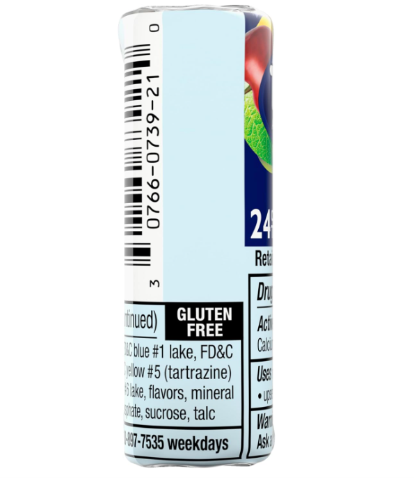 Active Ingredients: (per tablet) Calcium Carbonate USP 750mg - Antacid; Inactive Ingredients: Adipic acid, corn starch, FD&C blue #1 lake, FD&C red #40 lake, FD&C yellow #5 (tartrazine) lake, FD&C yellow #6 lake, flavors, mineral oil, sodium polyphosphate, sucrose, talc.
