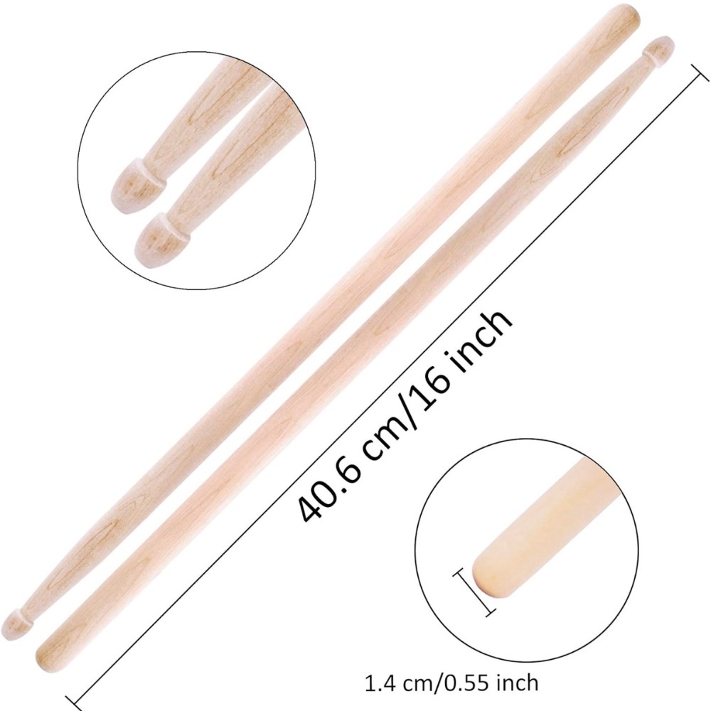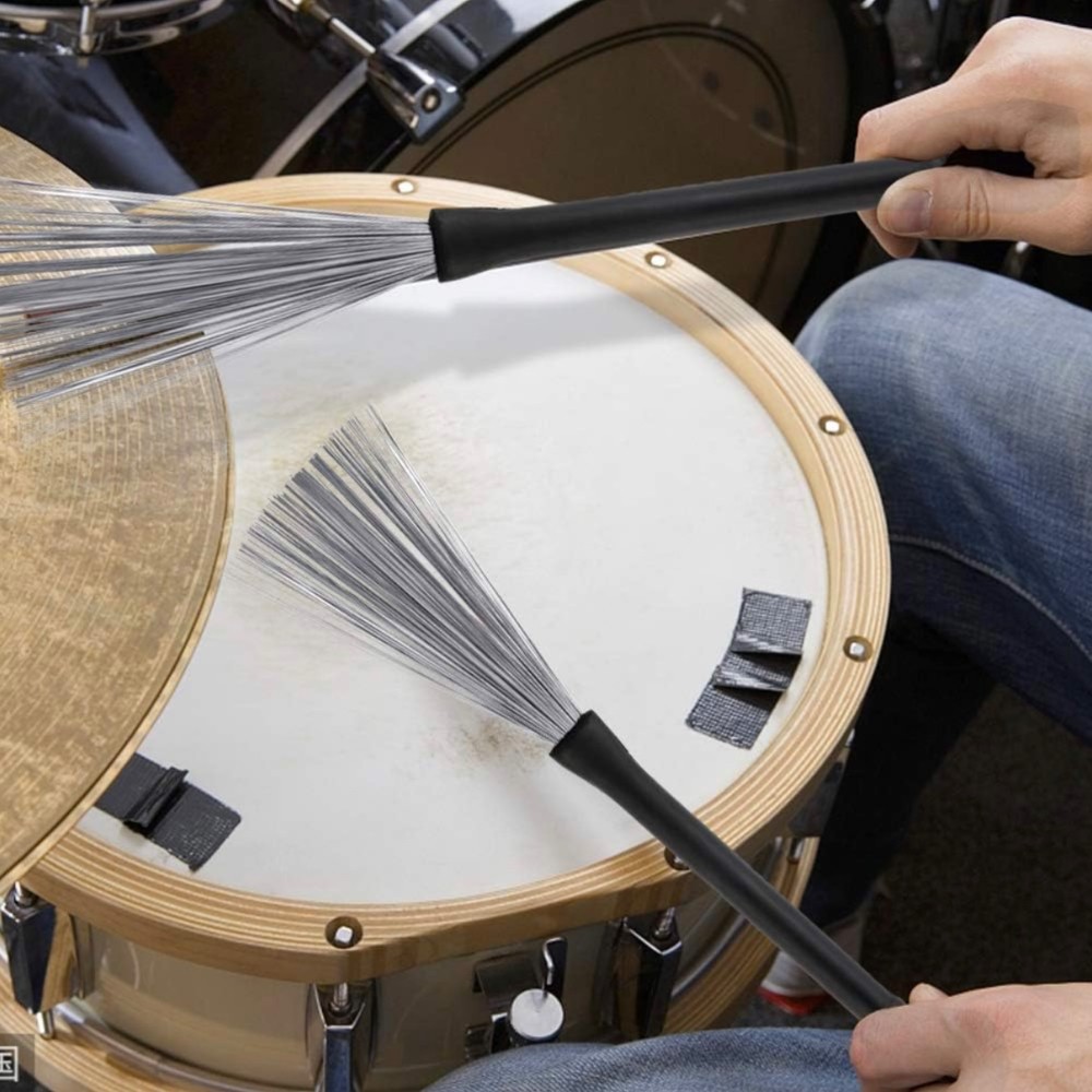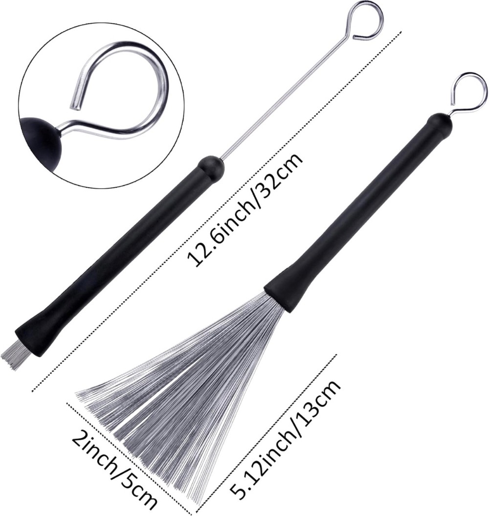 Set Contains: 3 Pairs 5A Hard Maple Wood Drum Sticks + 1 Pair Retractable Wire Brushes + Storage Bag