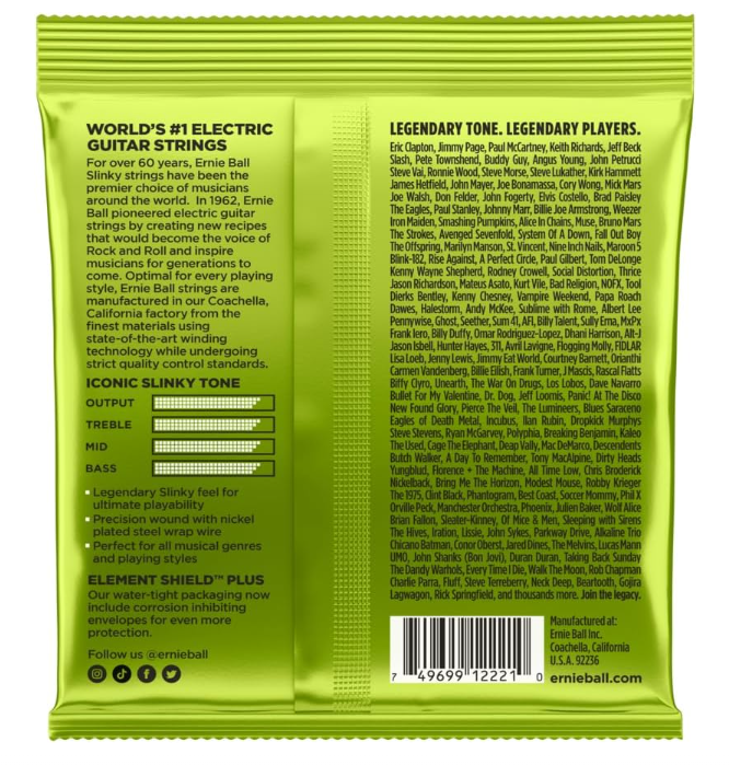 Preferred by players across many genres, Regular Slinky’s 10-to-46 gauge has become the industry standard