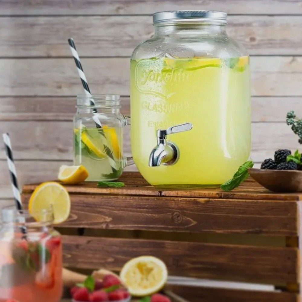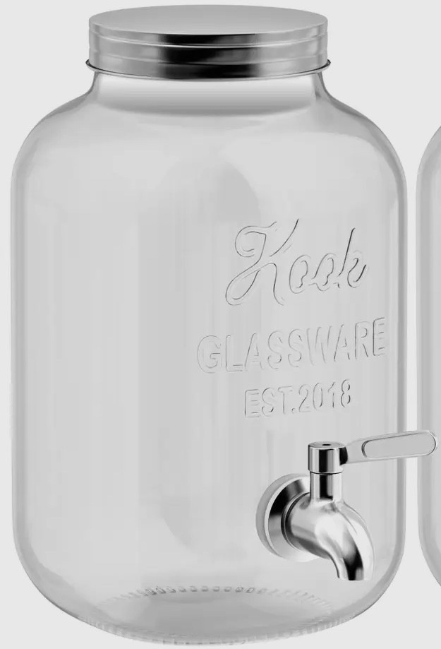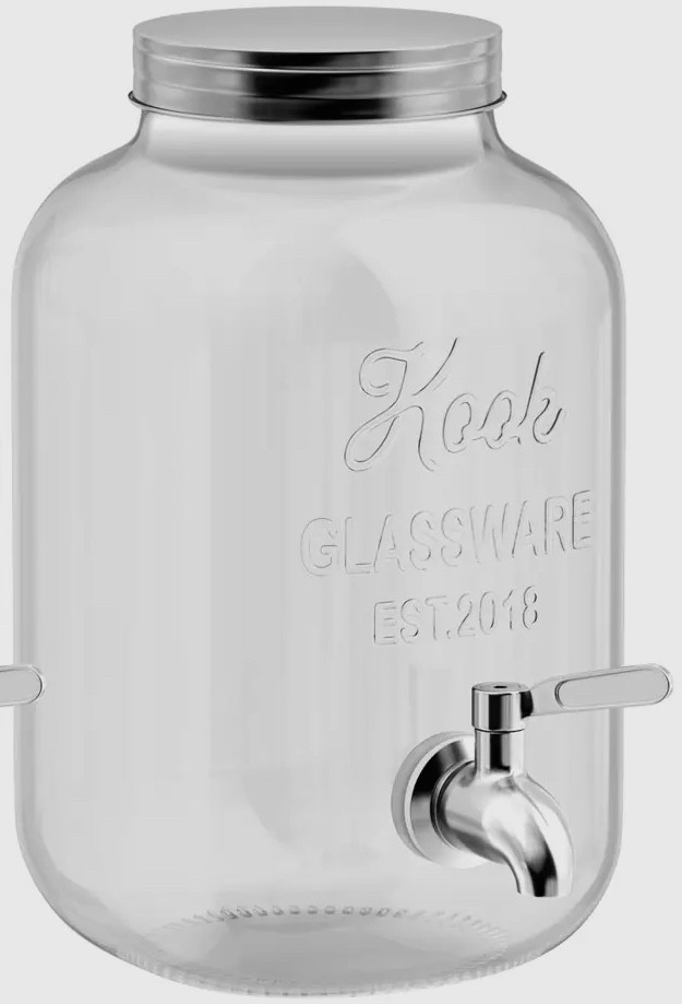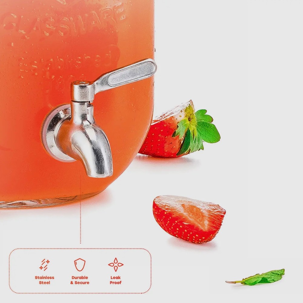 This classy glass dispenser is leak-free, designed with a stainless steel spigot, and lightweight for easy handling.