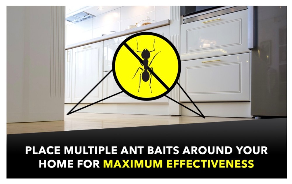 2. For thorough ant control, all four baits must be used at one time. For LARGER KITCHENS or PARTICULARLY HEAVY INFESTATIONS, we strongly recommend using additional baits.