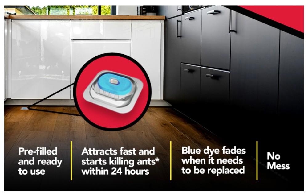 Raid® Max Liquid Ant Bait quickly attracts & kills ants where they breed. The pre-filled liquid ant bait is convenient and ready-to-use. To use, place the Raid Max Liquid where ants are present. The bait works by having ants consume the liquid inside of it so they can take it back into the colony where it is fed to other worker ants, larvae and the queen ant, killing the colony. The ant bait can be used indoor and outdoors to control as listed variety of ant types, excluding fire, carpenter, harvester, and pharaoh ants.