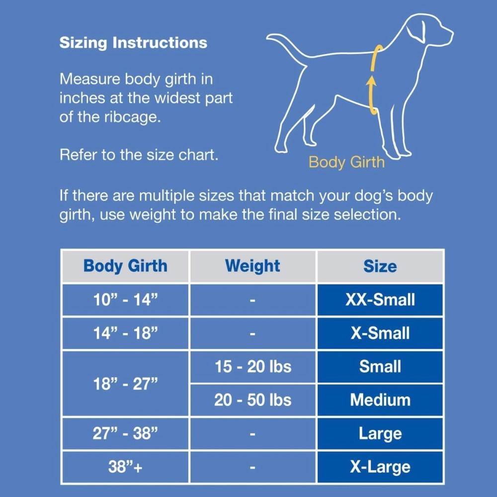 Adjustable Sizing, Reflective; Neck sz= 25”/Chest Sz= 27”/ Recomm. min. weight= 20 lbs