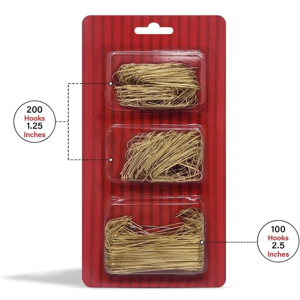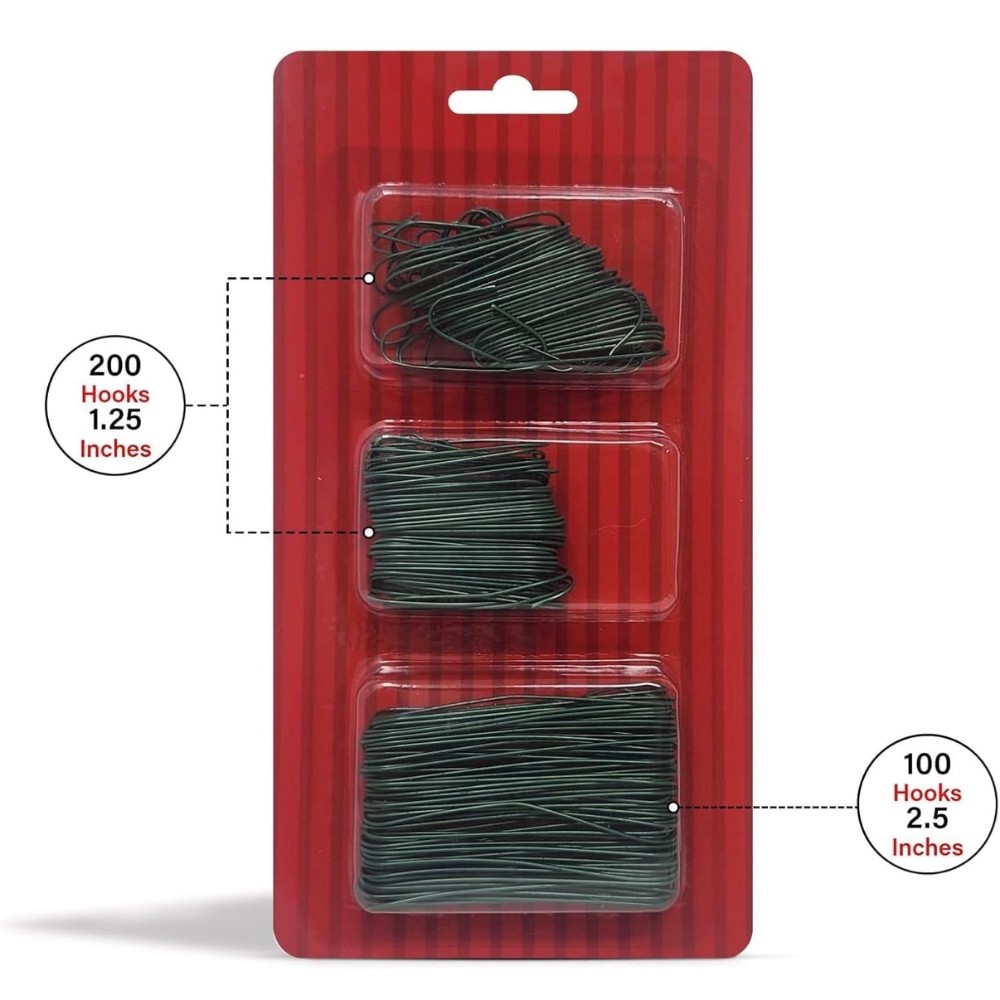 300-pack: 200x1.5” / 100x2.5” Metal Wire Hooks for Holiday/Christmas Tree Decoration