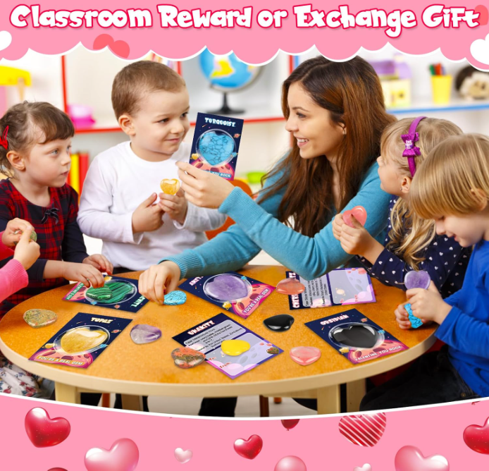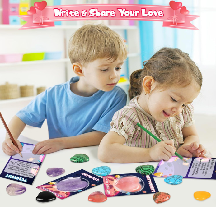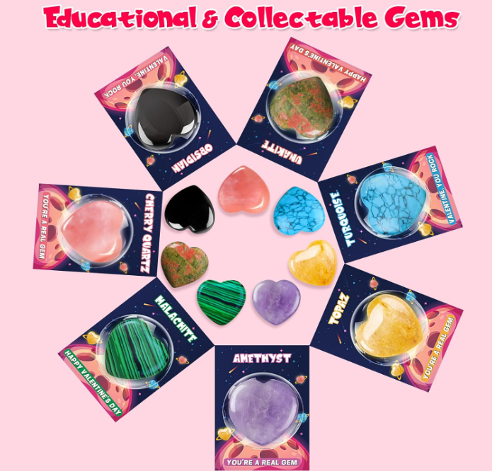 - Perfect Valentines Card Gift Set: These bulk crystals rocks and gems collection kit are perfect for valentines day gift, party favors, Valentines exchange pack, birthday parties, classroom Valentine's Day celebrations, goodie bag fillers, party supplies, school class preschool rewards and more. Awesome alternative to candy or treats! It's great valentine gift for kids to share with their friends and classmates.