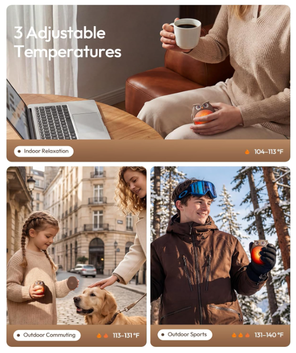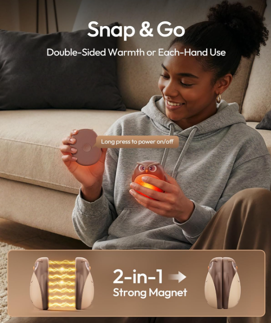 Comes w/ 2 Hand Warmers + 2 Charge Cords, 3 heat settings, Magnetic, Reusable