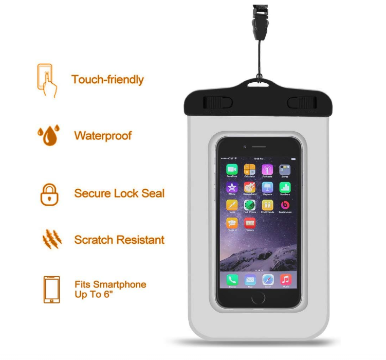 - Includes 1 waterproof phone pocket/Case: this waterproof phone pocket is impermeable/snow-proof/dustproof and friendly contact, compatible with up to 6.0 inches of phone, you can also put bank cards or other gadgets. You can still use your phone's Touchscreen & Take Photos with the case closed.