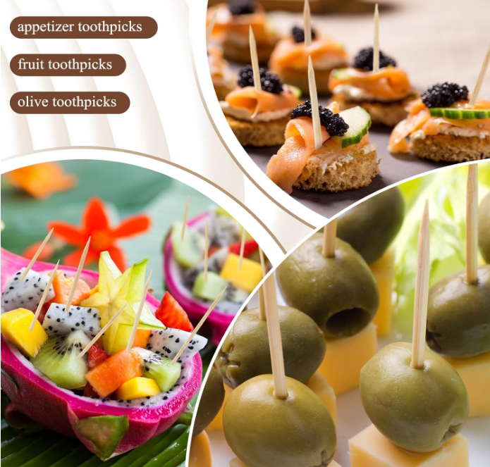 Double-sided, Rounded Toothpicks for Party Appetizers, Food Trays, Fruit, Teeth Cleaning, etc.