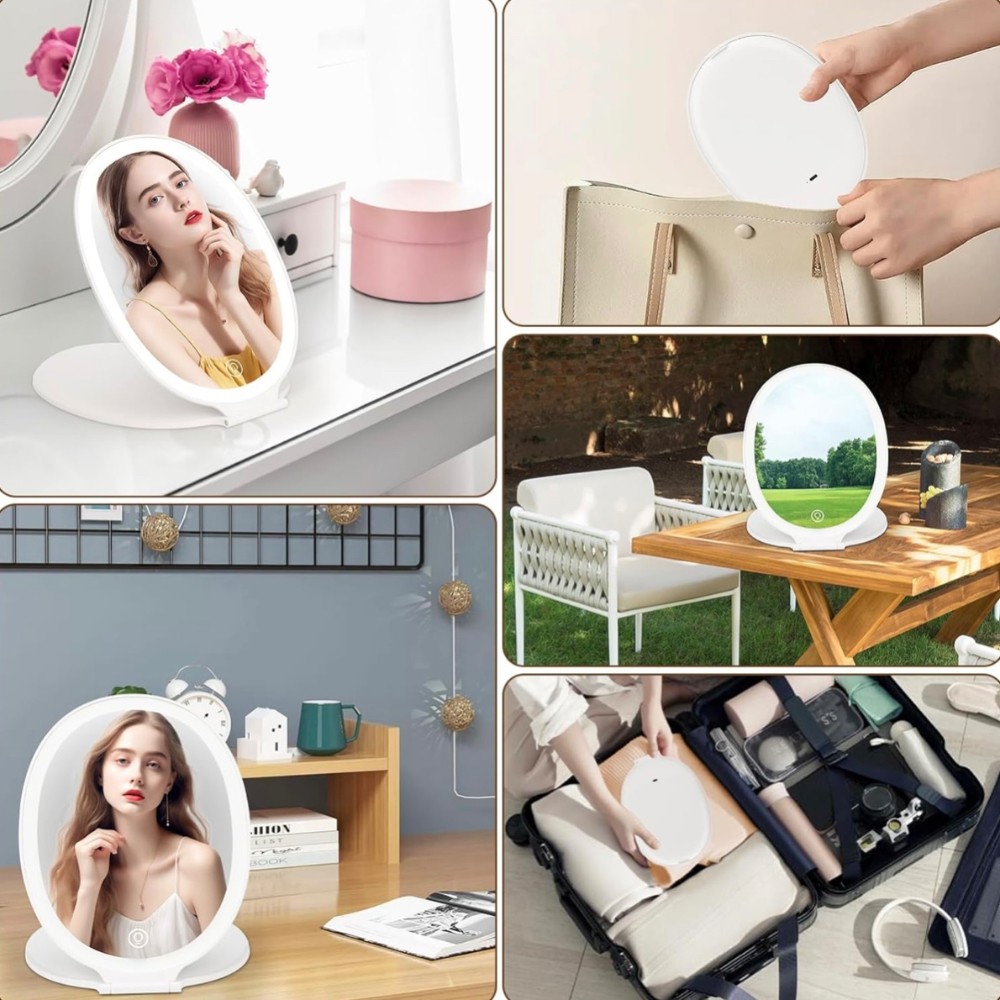 • (Perfect Gift) The LED makeup mirror is made of high quality ABS and glass material, which will not be deformed, reflects naturally and has a clear screen. Thoughtful and practical, this travel makeup mirror is an ideal gift for mom, girlfriend, wife and others on Valentine's Day, Mother's Day, Christmas, New Year and other special festivals.