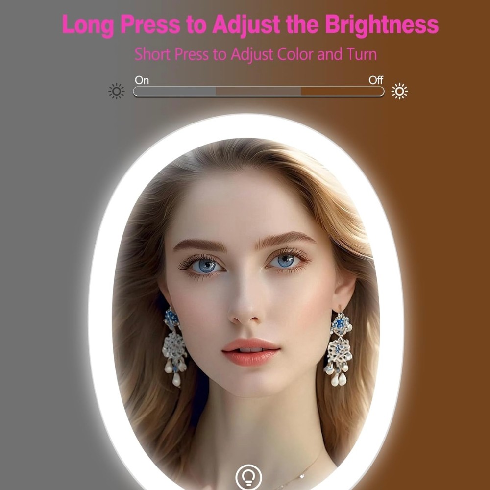 • (Dimmable Touch Screen) The travel vanity mirror provide bright and soft lighting. Long-press the smart touch sensor button to smoothly adjust the brightness to your need.