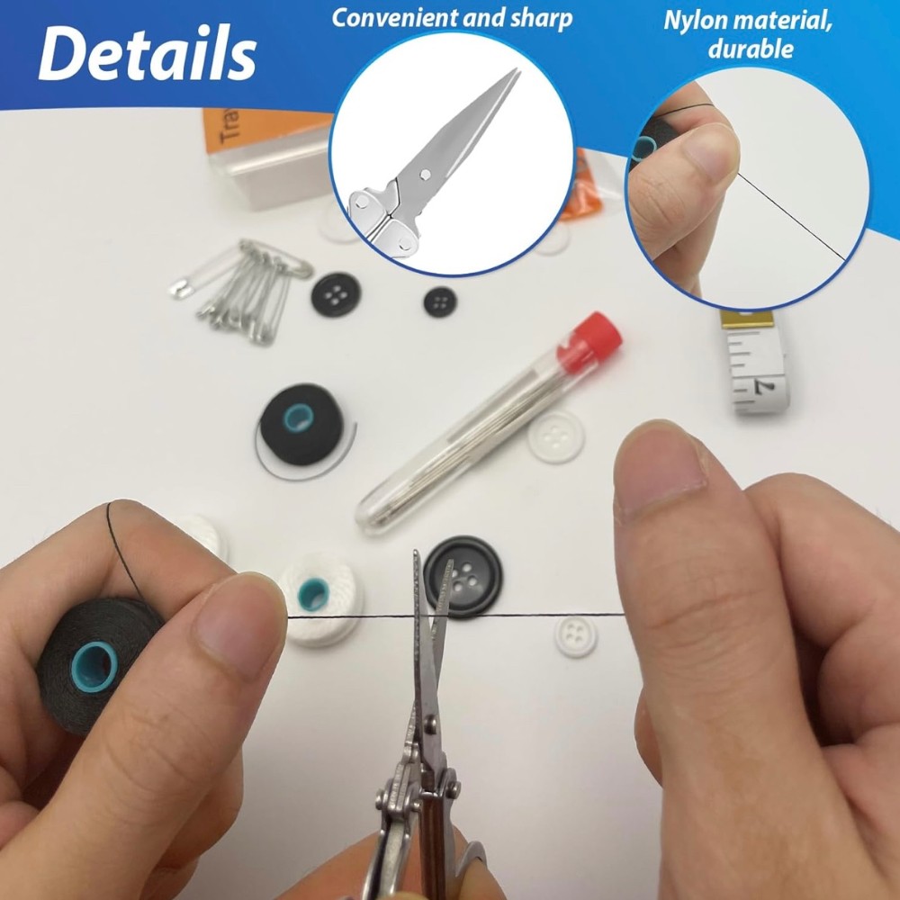 • Portable and Durable: Our Mini Travel Sewing Kits are built to last. Crafted from high-quality materials, these sewing kits can withstand everyday use and the rigors of travel. The included travel scissors and sewing accessories are not only durable but also compact, making them easy to carry anytime, anywhere. Whether you're embarking on a trip or simply need a reliable sewing kit for daily use, our Mini Travel Sewing Kits are the perfect choice