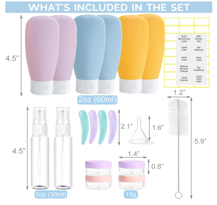Travel Size Leak Proof Containers Kit, Portable & Refillable Travel Accessories